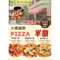 5/21(火)イタリア本場のピザ「バーチョ・ディ・ジュリエッタ恵比寿店」ピッツア3メニューが一日限りの半額!