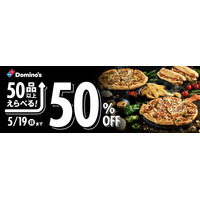 ドミノ・ピザ、GWにお金を使いすぎて軽くなったお財布を救う「50品以上から選べる!50%OFFキャンペーン」5月10日から19日まで10日間限定開催!大好評の新商品も人気のデザートも!