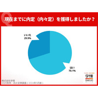 25卒学生の4月末時点の内々定率は<70.1%>、文系学生の内々定率の伸びが目立つ。理系学生は、就職活動中の学生が「50.7%」と約半数まで減少。