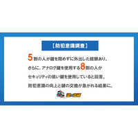 【防犯意識調査】5割の人が鍵を閉めずに外出した経験あり。さらに、アナログ鍵を使用する8割の人がセキュリティの低い鍵を使用していると回答。防犯意識の向上と鍵の交換が急がれる結果に。