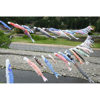 【岐阜県高山市】飛騨川の青空に泳ぐ約100匹のこいのぼり