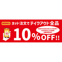 テイクアウトメニュー全品がネットオーダーで10%OFF!期間限定「全品10%OFFキャンペーン」開催!<実施期間2024年6月4日(火)15時~6月25日(火)15時>