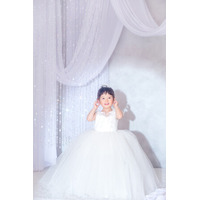 七五三・3歳ドレス最新ビジュアルが写真工房ぱれっと旭川店に新登場。 スポットライトを浴びてまるで…
