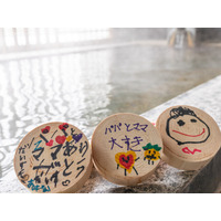 お父さんへの感謝の気持ちを込めて。メッセージ付きのヒノキの入浴木が浮かべられた湯で、身も心も温まる…
