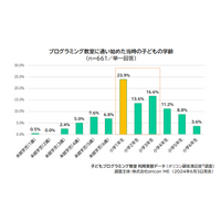 2024年 『子どもプログラミング教室』 利用実態データ|教室に通い始めた学齢は「小学1年生」が最多 23.9%(オリコン顧客満足度(R)調査)