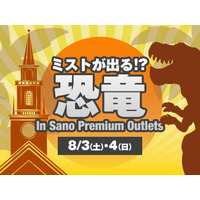 佐野アウトレットに、ミストが出る全長8m巨大ティラノサウルスが登場