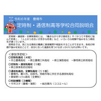 定時制・通信制・全寮制の特色ある取り組みを広くお伝えし、進路選択に役立ててもらうために、以下…
