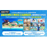 TVアニメ93エピソード&映画41作品を65日間毎日ノンストップ無料放送!9月3日(火)ドラえもん誕生日当日…
