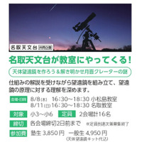 【宮城県のあすなろ学院×名取天文台】小学3年生~小学6年生対象特別講座「名取天文台が教室にやってくる! 天体望遠鏡を作ろう&月面クレーターの謎」8/8(木)、8/11(日)開催!