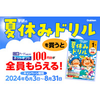 【夏休みの勉強習慣に】1学期の復習がこれ1冊で完結! 今なら学研の夏休みドリル購入で、図書カードネットギフトが全員もらえる!