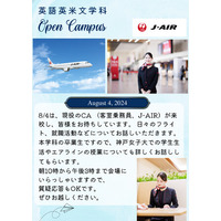 神戸女子大学 は、8月4日(日)に行われるオープンキャンパスに現役の客室乗務員である卒業生を講師…