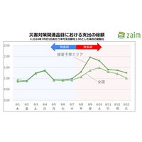 【Zaimの家計簿データ分析】南海トラフ地震臨時情報発表後、被害予想エリアでは災害対策関連品目の支出が約2倍に