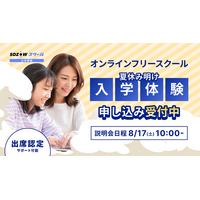 約600人在籍のオンラインフリースクール 夏休み明けに入学体験を特別実施 8/17(土)に説明会開催