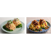 『大葉香る 明太子と3種チーズのポテトサラダ』、『甘辛醤油の鶏そぼろポテトサラダ』 [画像1: …