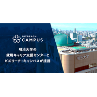 明治大学就職キャリア支援センターとビズリーチ・キャンパスが提携。大学1・2年生からのキャリア観醸成を目指し、「学生×卒業生ネットワーク」を強化