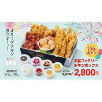 【韓国No.1フライドチキンブランド bb.q オリーブチキン】お盆はみんなでオリーブチキン食べよーっ!サクサク韓国チキンがたっぷり入って、770円もおトクな「お盆ファミリーチキンボックス」限定販売