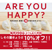 ~毎月29日に皆さんに福が訪れることを願い、5日間限定で、大変お得なしその葉ぎょうざ10%オフキャンペー…