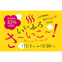 ブランド統合記念のお得なキャンペーン!いいふろ会員は宿泊料金15%OFF!いいふろ!さ~いこ~キャンペーン