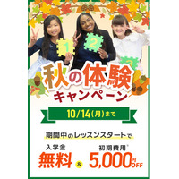 【シェーン英会話】秋の体験キャンペーン第2弾!入学金無料&初期費用割引、10月14日まで