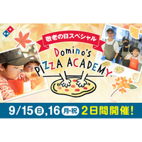 ドミノ・ピザ、「ピザアカデミー 敬老の日スペシャル」65歳以上の方と参加で、1名500円で本格ピザ作り体験ができる!各店舗・各日先着1組4名様まで、参加費用が75%オフに!
