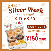 “お好きなドーナツ6個”が150円OFF!祝日の多い9月はドーナツをシェアして楽しもう『Krispy Silver Week Campaign』