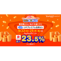 9月22日、23日は、LYPプレミアム会員なら最大23.5%のPayPayポイント付与 「ヤフービッグボーナ…