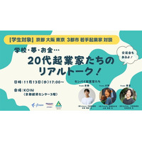 11月13日(水)に学生を対象とした起業イベントをみずほ銀行・freee・京都知恵産業創造の森が主催
