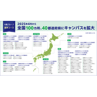 N高グループ通学コース 2025年4月から全国100カ所40都道府県にキャンパスを拡大 青森・富山・甲府・滋賀・徳島・熊本など1都1道1府21県に31キャンパスを開設
