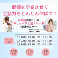 『言葉が遅い自閉症キッズの癇癪を卒業させて会話力をどんどん伸ばす 自閉症専用3ヶ月おしゃべり上達メソッド 体験セミナー』お申し込み受付中