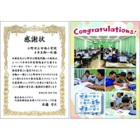 兵庫県小野市内小学校と連携『made in ONO エコトレー』のデザイン協力に対し、小野市立市場小学校・来住小学校の2校へ感謝状を贈呈
