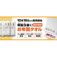 注文を受けた翌々日にお届けできるスピード作成を実現!!お年賀タオル 10月16日販売開始!