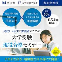 【増田塾・大学受験ナビオ】高校1・2年生と保護者対象「大学受験現役合格セミナー」、11月24日に開催