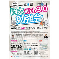 【岡山大学】第5回岡大Web3.0勉強会「Web3でDAOを作ろうハンズオン」〔10/16,水 岡山大学津島キャンパス〕