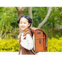緑豊かな都心の憩いの空間「福岡大名ガーデンシティ・パーク」で、好きな色のランドセルを背負っておさん…