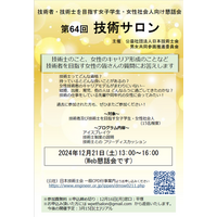 【技術者を目指す女子学生や女性技術者のキャリアパスの悩みに応えます】第64回技術サロンを12月21日にオンラインで開催!(技術士会主催)