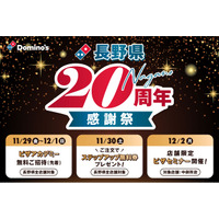 ドミノ・ピザ、11月28日「長野県20周年感謝祭」スタート!長野県民の皆さまに感謝をこめて4つの企画をプレゼント