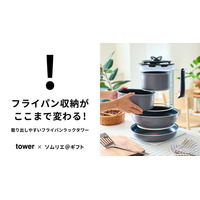 【11月18日新発売】フライパン収納がここまで変わる!山崎実業 towerソムリエ@ギフト限定商品『フライパンラックタワー』。取り出しやすさを追求した新しい収納スタイルを実現!