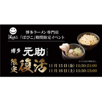 【元祖泡系博多一幸舎】プロデュース博多ラーメン専門店「ぱぴこ」で「博多元助」のつけ麺が2024年11月15日(金)・16日(土)2日間限定で復活販売いたします!