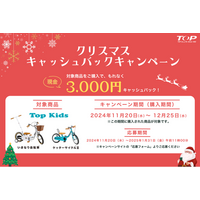 幼児用自転車Top Kidsのクリスマスキャッシュバックキャンペーンを実施。現金3,000円を還元!