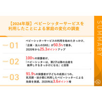 ~92.8%の保護者が、これから出産を迎える方に「ベビーシッター利用を勧めたい」と回答、2020年から3.6ポ…