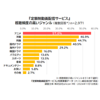2024年 定額制動画配信サービス利用実態データ|視聴ジャンル「アニメ」最多57.0% "観て良かった漫画・アニメ実写作品ランキング"1位は『キングダム』 SVOD限定作品では『沈黙の艦隊』がトップに