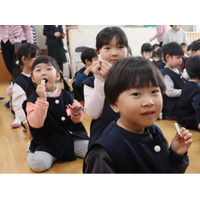 サンタ登場に歓声も!噛んでふくらませて楽しくお口周りをトレーニング!幼稚園児に口腔トレーニングを楽しくレクチャー「フーセンガムトレーニング クリスマス会」を開催