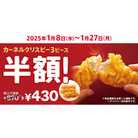 【2025年も“半額”キャンペーンを実施します!】にんにく醤油の風味とサクサク食感がクセになる「カーネルクリスピー3ピース半額」キャンペーン1月8日(水)から1月27日(月)まで実施