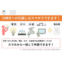 川崎市では、電気、ガス、水道などの開始・休止や住所変更等の届出について、民間の引越しポータ…