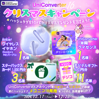 【 UniConverter Ver.16 】クリスマス記念キャンペーン実施中!ワイヤレスイヤホン、デジタルギフトなど抽選で総勢16名様にプレゼント