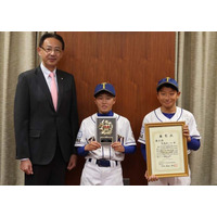 高槻市の中学生2人が野球の全国大会出場を市長に報告