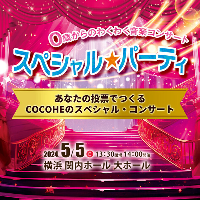 株式会社ライズサーチ(本社:横浜市港南区 代表取締役 内田奈津子)が運営するパフォーマンスグループCOCOHEは、2024年5月5日(日) 関内ホール大ホールにてCOCOHE 5周年記念 0歳からのわくわく音楽コンサート「スペシャル★パーティ」を開催します。
