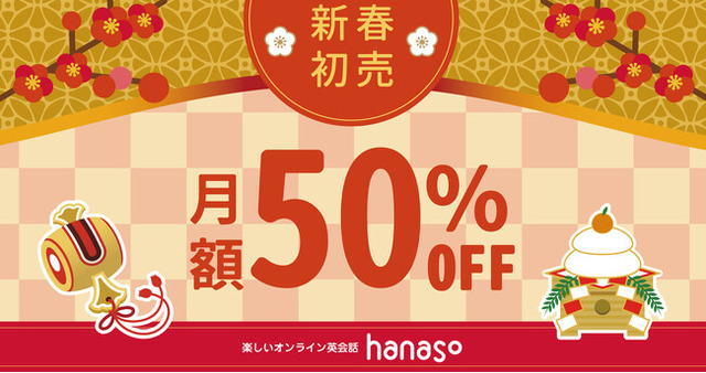 株式会社アンフープ(所在地:静岡県富士市、代表取締役社長:重森 渉)がサイト運営する、無料通話ソフトZoomまたはSkypeを利用したオンライン英会話スクール「hanaso」では、2024年1月5日(金) ~1月24日(水)に、新規入会者を対象としてどのプランでも月額料金が初月のみ半額(税込2,490円~)で入会できる「新春キャンペーン2024」を実施いたします。