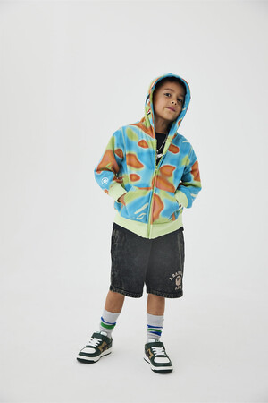 「SCHOOL」はアイビールックにストリートのエッセンスをミックスしたデイリーカジュアル。オーバーサイズなシルエットでストリート感を醸しながら、グリーンやオレンジ、イエローなどの明るいカラーでキッズらしさをプラス。ユーズド加工を施したり、手刺しゅう風のモチーフを使用するなど、ディテールにもこだわったアイテムに仕上げました。