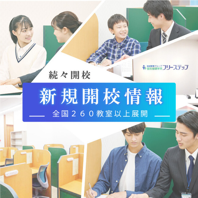 いずれも、受験や学習に強い関心を持っている家族が多く暮らしている地域です。個別指導学院フリーステップの豊富な実績、そして研究し尽くされたノウハウによって、多くの生徒の点数アップや志望校合格に貢献できると考え、開校を決定しました。